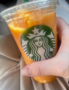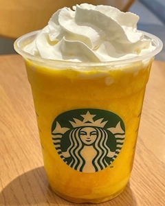 今日めーーーっちゃ甘いものの気分で仕事中に甘いもの、甘いもの🍫 ってなって帰りスタバ寄ってさくらのやつかおーと思ったらソールドアウト😭 なのでかわりにマンゴーフラペチーノ🥭買った💛 これはこれで激うま💛