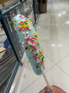 フライトさんの娘さんが知アピでマルシェ出店してたから行ったんだけど チョコバナナご馳走様になった🍌💛 ピアスとかはまた載せよᐡ> ·̫ <ᐡ 今日ネイルだけどデザインどおしよ!